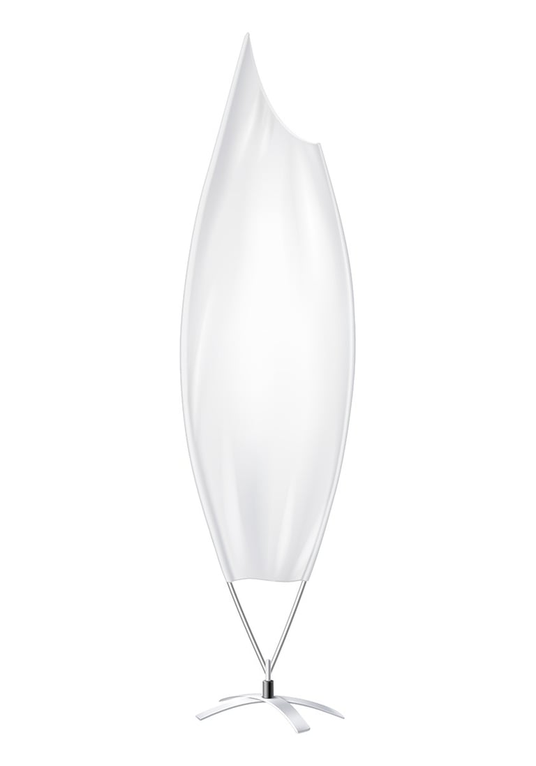 Forma: a goccia, a vela, drop flag, a pinna, fly banner, pennoni.